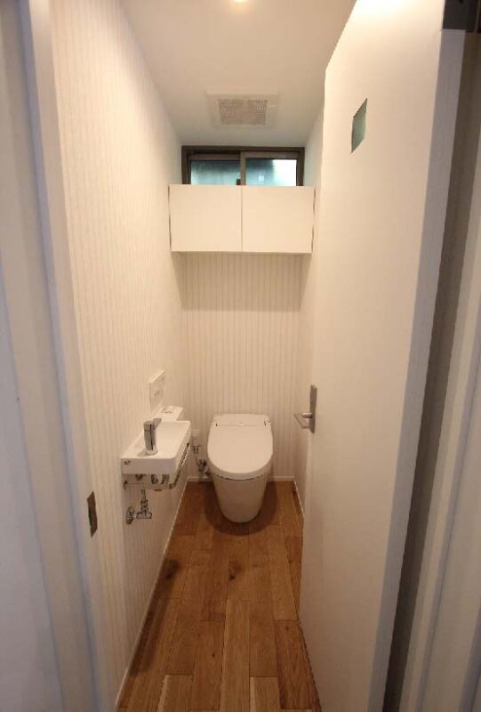 内容:■外壁工事ガルバリューム鋼板(鎧張り)■陸屋根合板下■玄関収納シナ合板オリジナル製作品■玄関ドア(再生利用)■床材/チーク天然木突板フローリング■天井/シナ合板市松張り■オリジナル製作キッチン(扉面材:ピアノブラック 取手:イタリア製アイアン)■洗面室/W900洗面化粧台・防水パンあり■浴室/壁下部ハイブリット大理石・壁上部:千葉県産杉板使用■タンクレストイレ/LIXIL(サティスS)壁付け手洗器